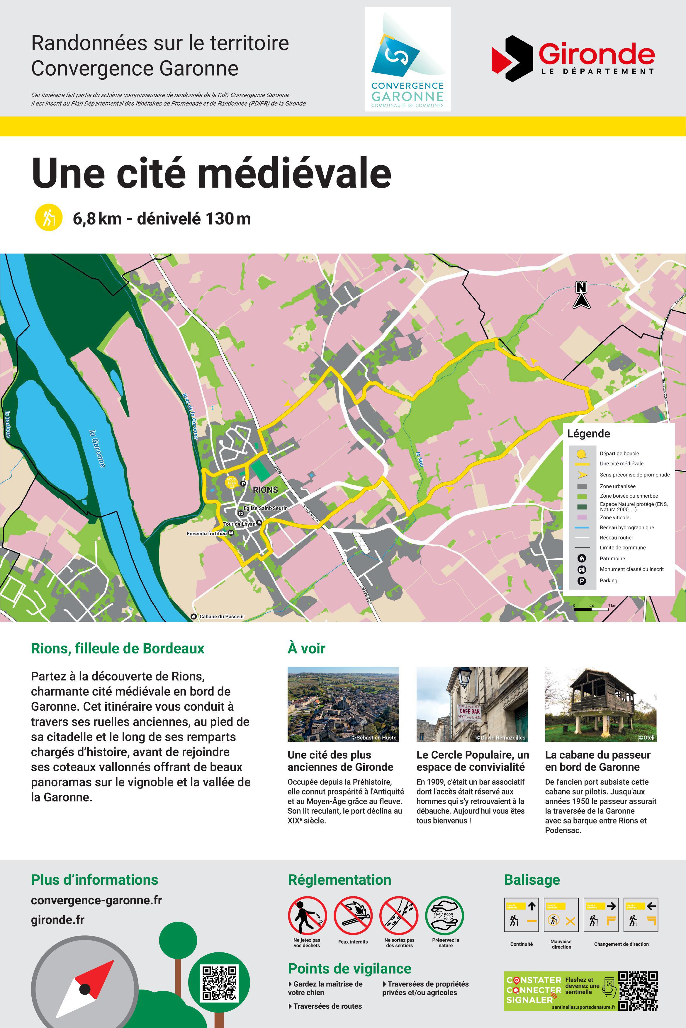Désormais, à Rions, seule cette boucle fait office d'itinéraire départemental de randonnée pédestre. L'entretien des itinéraires départementaux historiques incombe dorénavant à la commune.