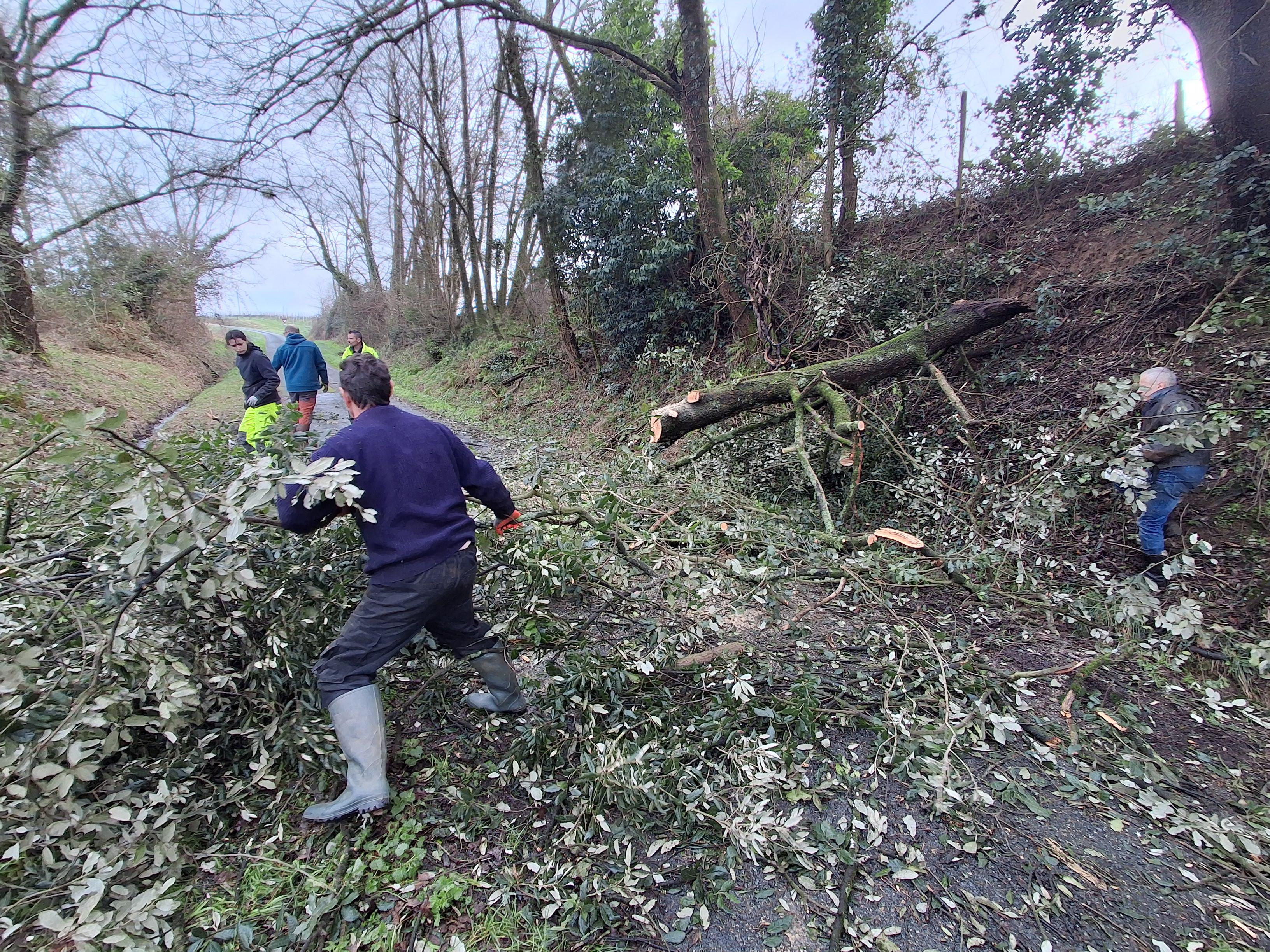 Ce matin, élus et agents techniques sont intervenus pour dégager les routes communales et départementales que barraient de nombreux arbres tombés au sol.