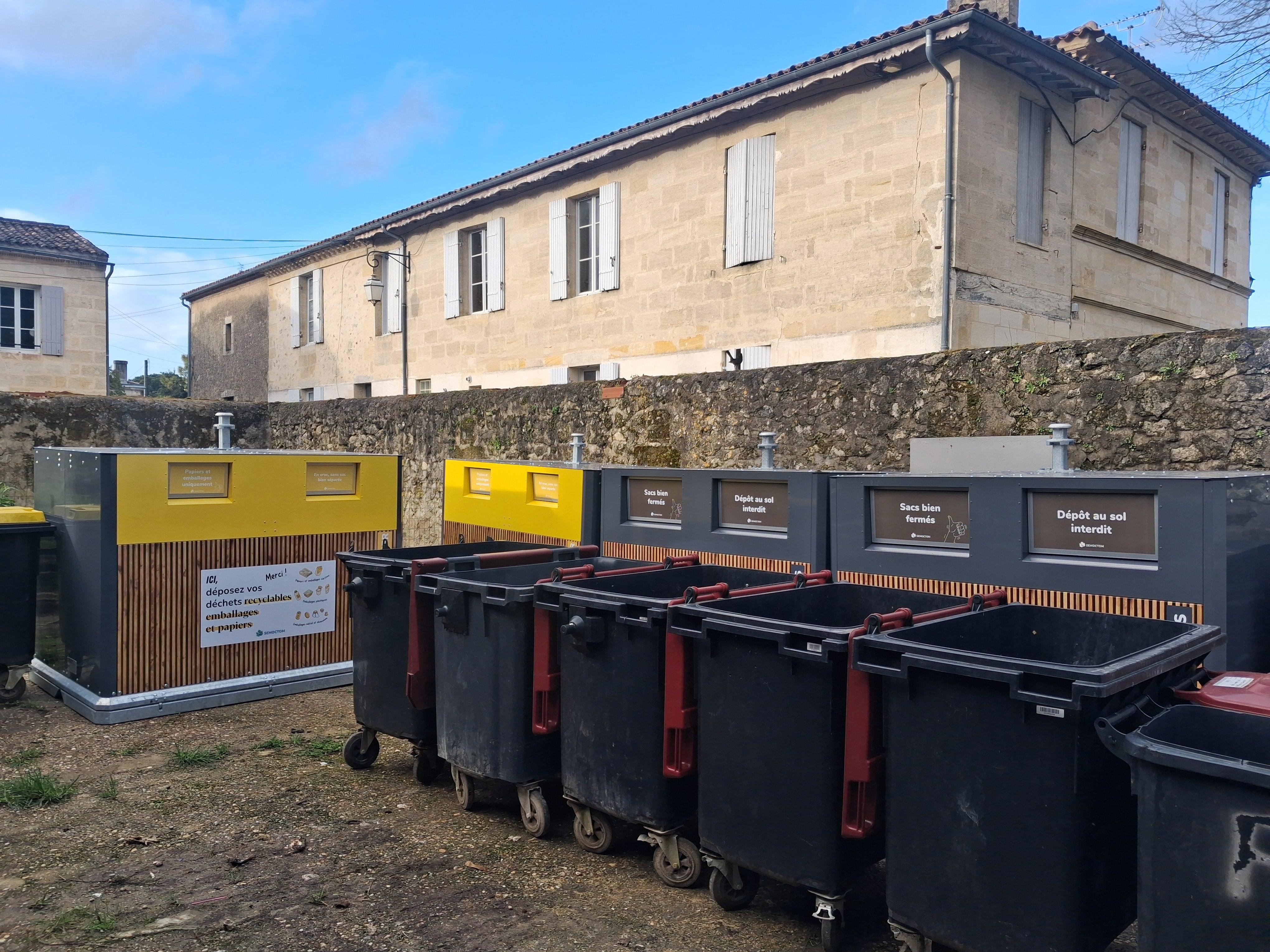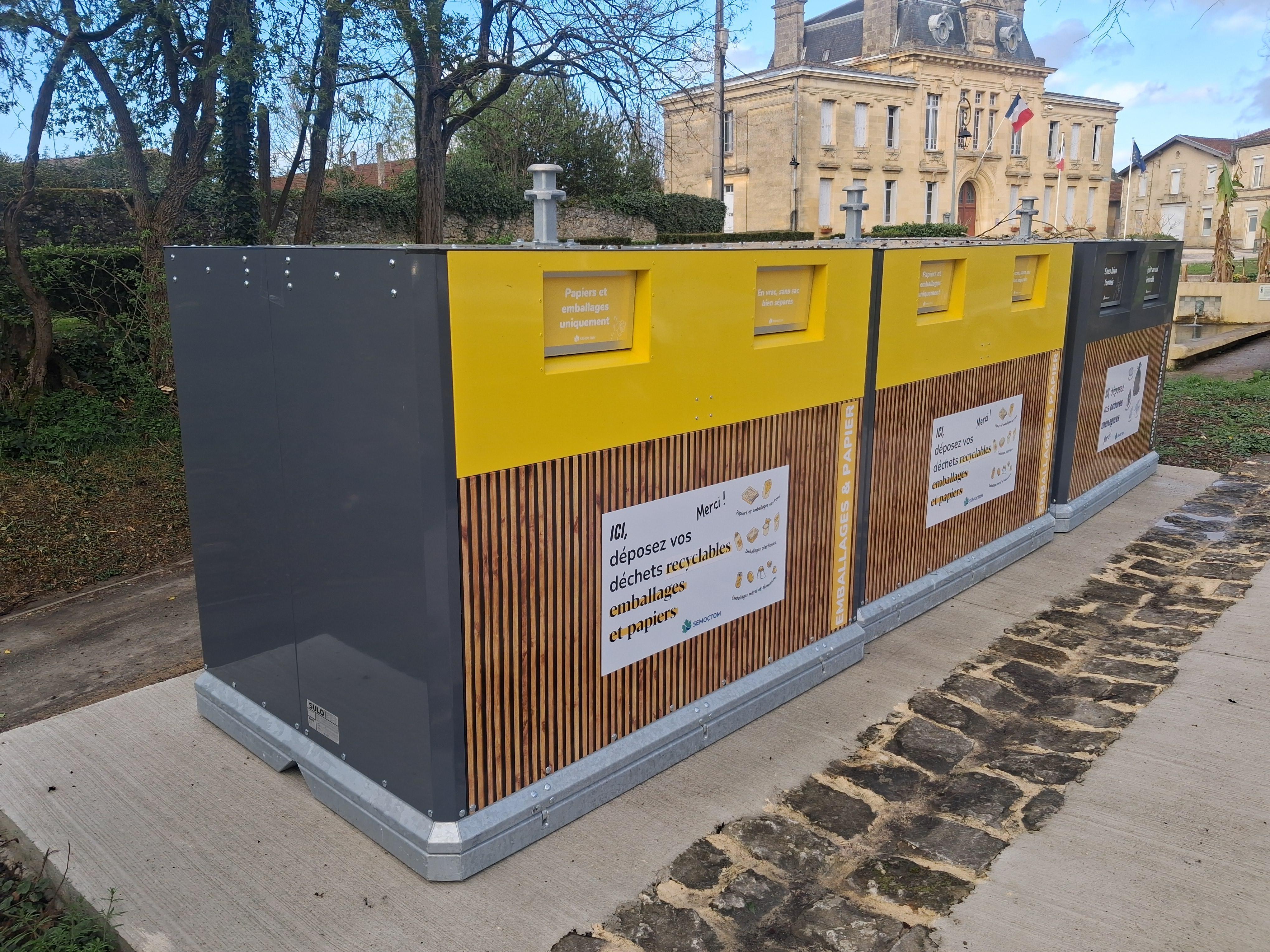 Après l'aménagement par la commune de dalles, le SEMOCTOM a installé aujourd'hui place d'Armes, place du General de Gaulle et place Jules de Gères des bornes destinées à recevoir les ordures ménagères, les déchets recyclables et les biodéchets sur chacune de ces places. Place d'Armes sera installé un bac pour le verre.